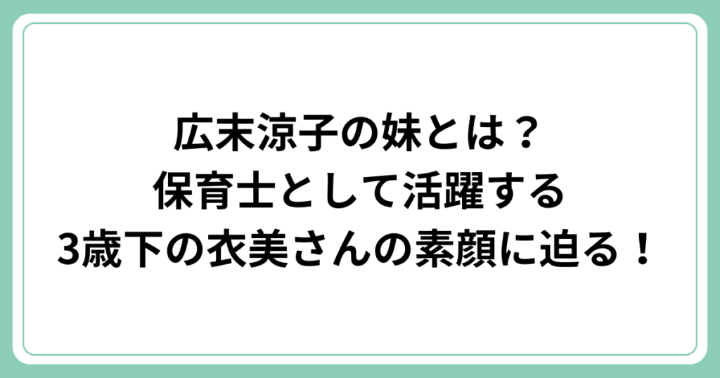 広末涼子さんといえば、1990年代後半から活躍する人気女優として知られています。 そんな広末涼子さんには、あまり知られていない妹がいるのをご存知でしょうか? 今回は、広末涼子さんの妹である衣美さんについて、その素顔や姉妹関係に迫ります。 保育士...