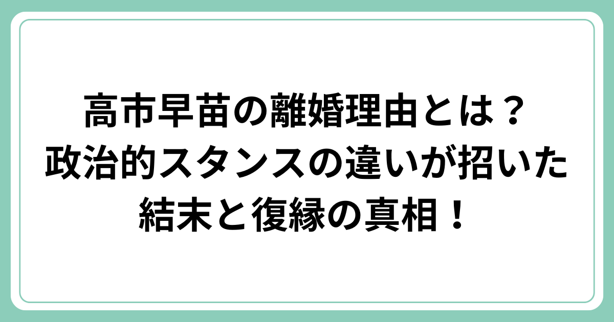 今回は、高市早苗氏の離婚理由から復縁に至るまでの驚きの真相に迫ります。
