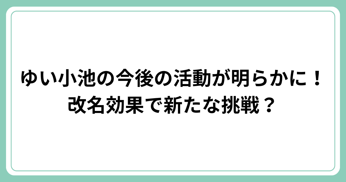 今回は、ゆい小池さんの今後の活動計画や改名効果について詳しくお伝えします。