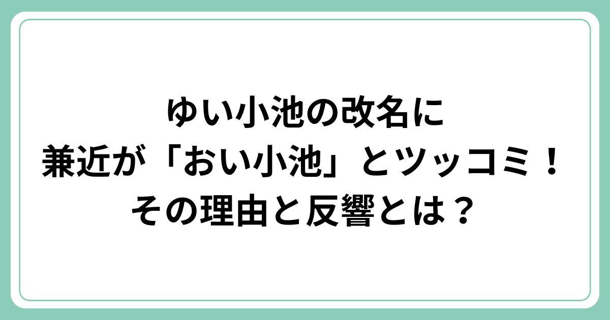 兼近さんの「おい小池じゃねぇか!」というツッコミは、この改名が成功していることを示すポジティブな証拠と言えるでしょう。